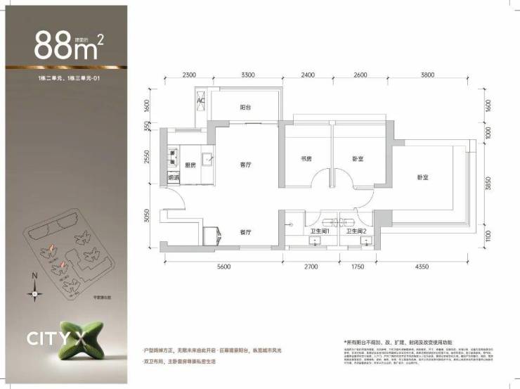 2.资料中所载房屋面积均为建筑面积,最终面积可能存在差异。