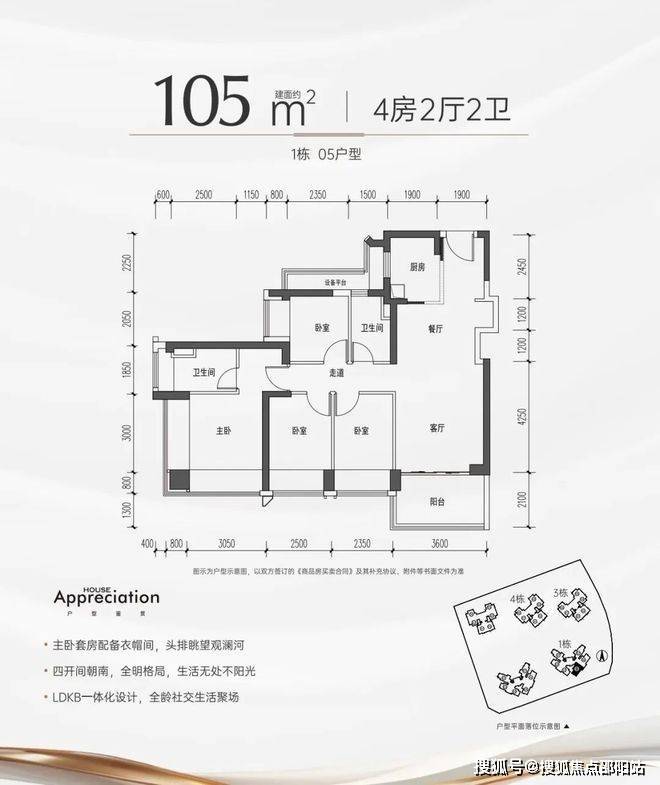 80㎡是本批次产品中唯一设计为南北对流格局,而且是整体横向采光,位于1栋,仅有2条腿,朝向社区内部园林相对静谧。