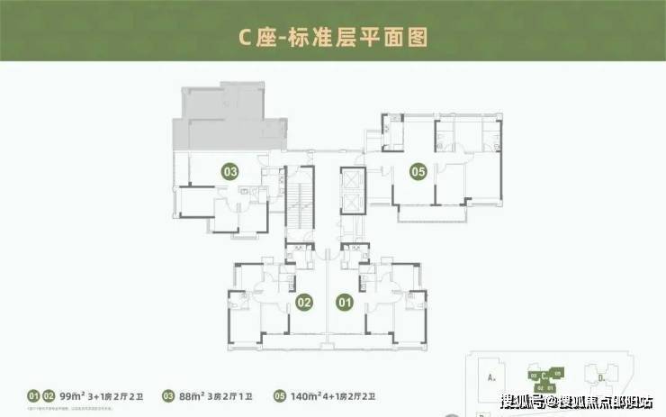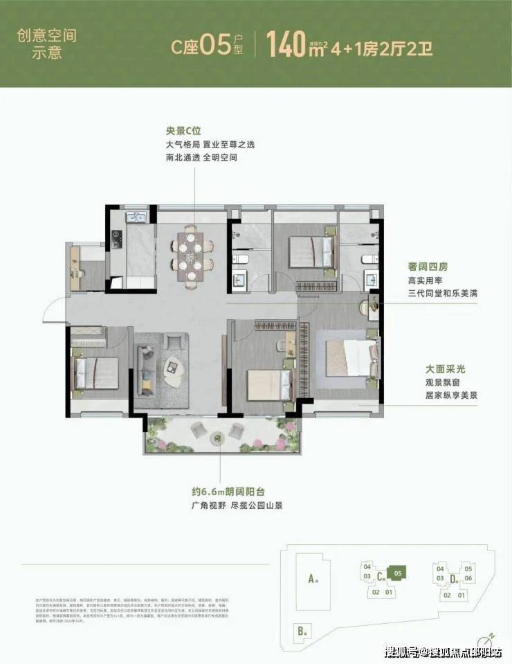 主力户型:72-140㎡2-4+1房