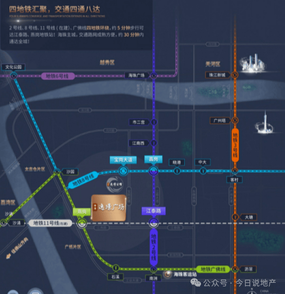 中冶逸璟广场位于广州市海珠区宝岗大道与江燕路交界处,地铁广佛线燕岗站、地铁2号线江泰路站附近;雄踞新海珠产业规划的“一区、一谷、一湾”的核心位置,优享三大功能片区内现代会展、电子商务、科技服务文化创意、现代商贸等产业的发展红利,地段升值定当不凡。