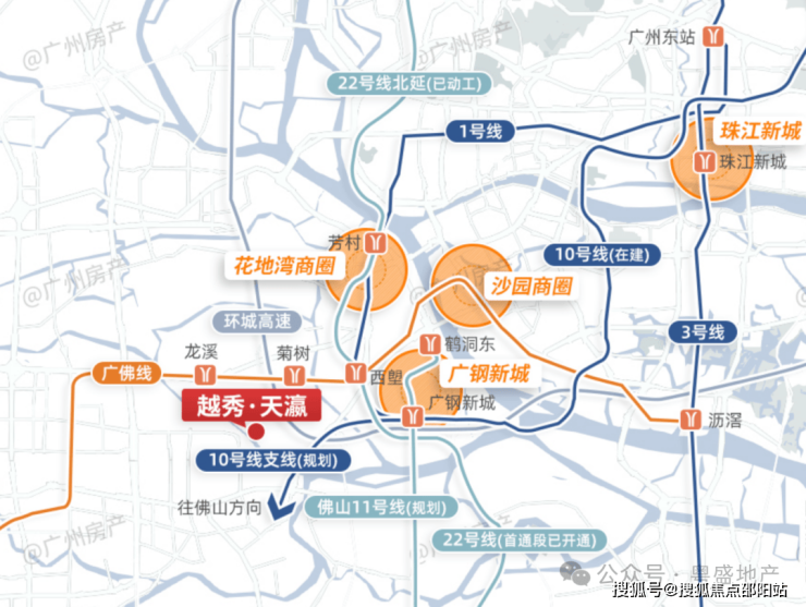 享地铁广佛线(菊树站、龙溪站)、广州1号线(西塱站)、双地铁线路;项目门口452、525路线路,便捷出行;邻近龙溪大道、花地大道、环城高速、如意坊放射线(建设中)等两行两纵交通路网,从项目出发自驾快速抵达白鹅潭、珠江新城商圈。信息来源:百度地图