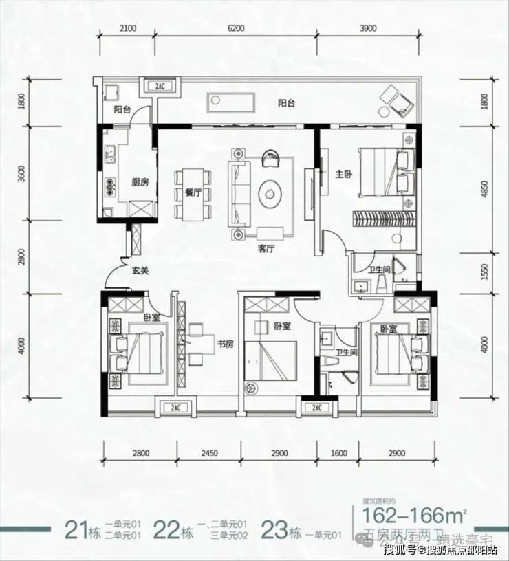 大双拼 274㎡(六房两厅五卫)