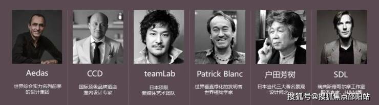 携手Aedas/CCD/teamlab/Patrick Blanc/户田芳树/SDL等全球知名大师,以环球大师智慧,汇聚全球最前沿创意与规划设计,打造建筑、自然、人、城市共生的品质住区。