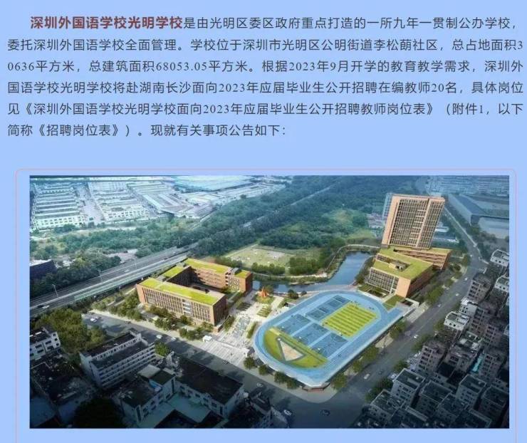 与深圳外国语学校光明学校(深圳四大名校之一)直线距离约800米,