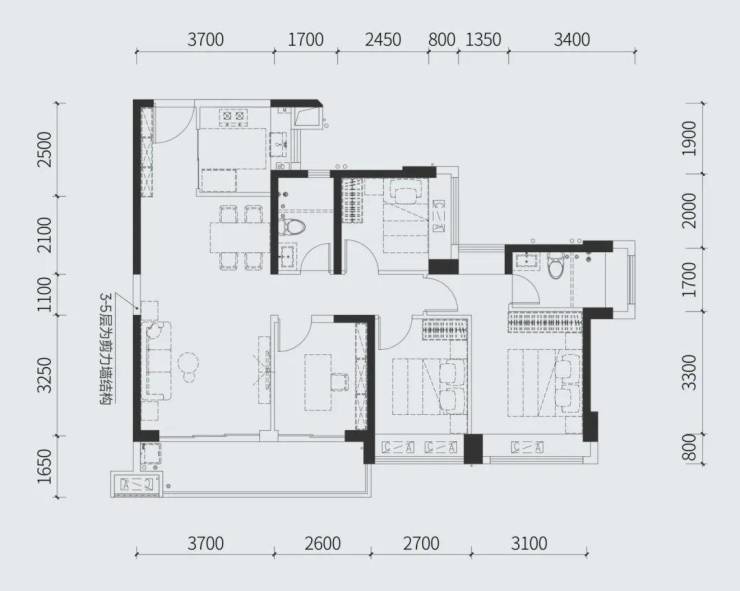 全明四开间 享充盈阳光盛景 卫浴三分离 居家清爽洁净