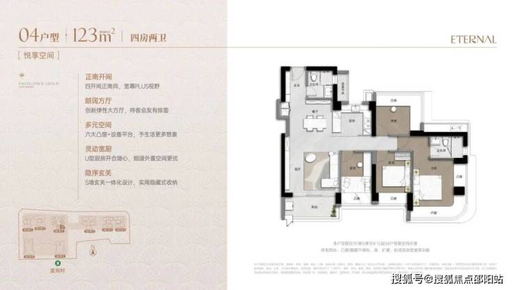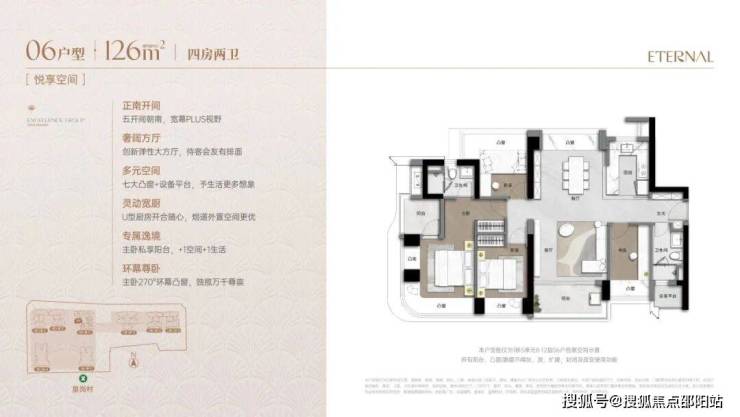126平4+1房2卫,朝西,客厅南北朝向,(摩登永恒,摩登中古,打造生活的多样化)