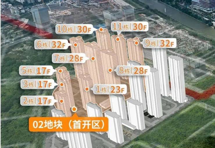 项目共规划20栋住宅,楼层控制在16至32层之间,非超高层设计,楼栋布局北高南低,预计供应900套左右房源