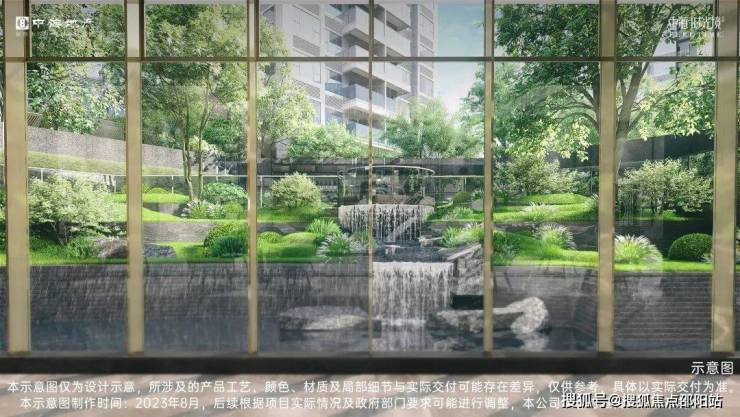 目光延伸,约2.7米的时光叠瀑与绿意交叠,水景呼应,林下时光、空中花园,一步一景,演绎奢雅与静谧。