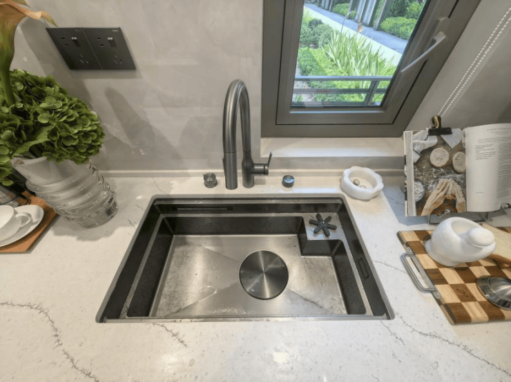 •社交厨房:烟道外置,厨房空间更完整;餐厨互动,丰富场景空间、增加交流互动;