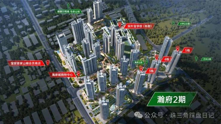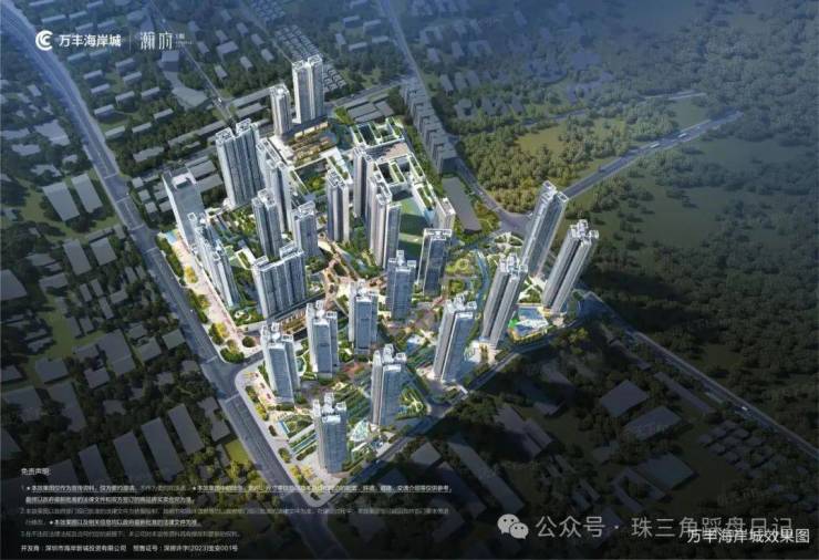 规划设计万丰海岸城瀚府一期位于宝安沙井区域的万丰海岸城——瀚府取证入市并公布了销售方案。据悉,本批入市产品为瀚府一期的1栋、2栋,可售房源566套,精装交付,户型为约100㎡三房两卫和约120㎡四房两卫,备案均价约5.75万元/㎡,总价区间为463万元-743万元。万丰海岸城瀚府占地约3万㎡,分为二期。由6栋塔楼、一个幼儿园组成,二期有一个社区体育活动场地约2000㎡,建成后产权将移交政府。