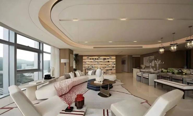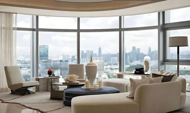 舒适:3.9米层高,10米客厅开间全落地玻璃设计。