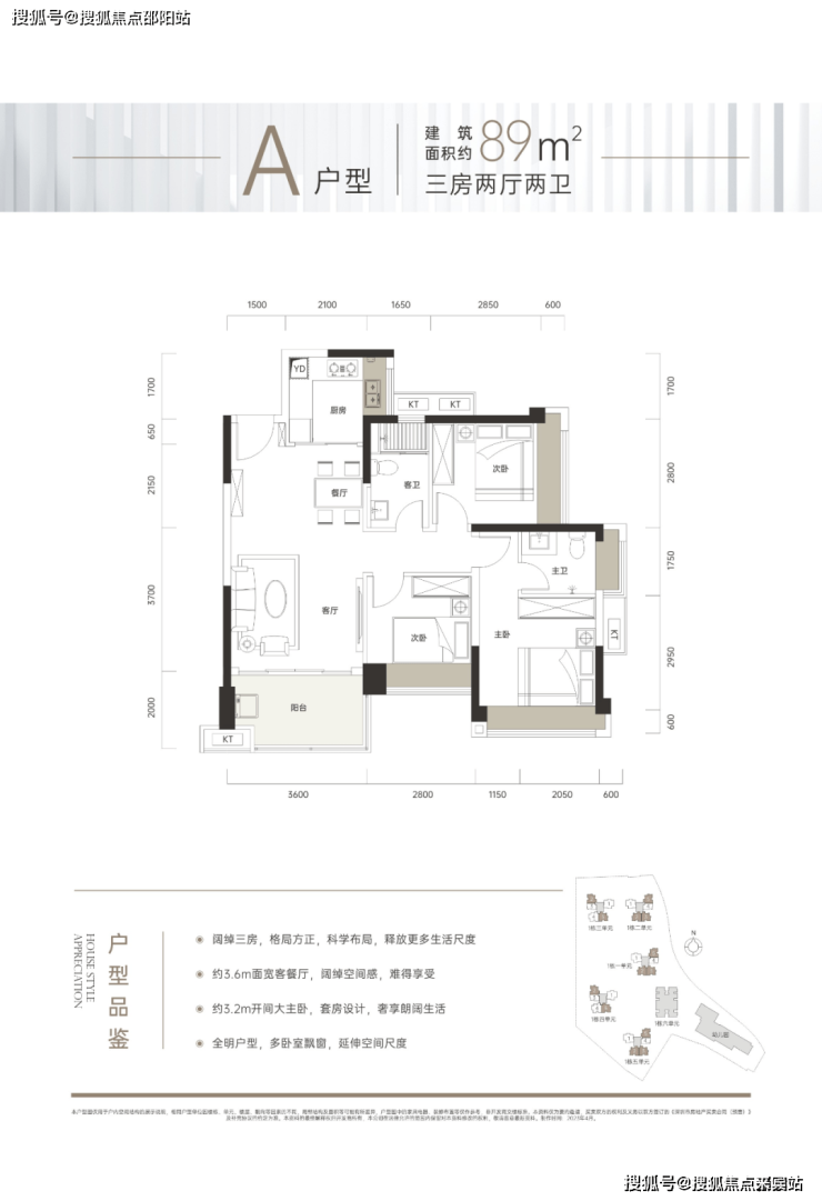 89㎡的户型是整个龙岗中心城都较为稀缺的3房2卫产品。约3.6米的面宽客餐厅,尺度更堪比市场上99㎡、106㎡的户型!