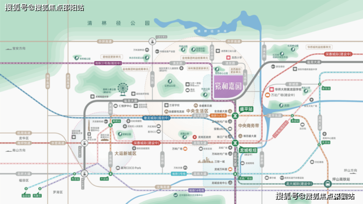 轨道交通上,项目近邻16号线盛平站,同时周边还规划了地铁31号线。另外,在建的龙城枢纽站规划为地铁21号线、深惠城际线、塘龙城际线、地铁31号线四线交汇,可快速换乘通达全城!