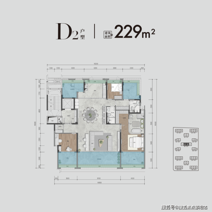 吉祥16号先天禀赋完美,地块方正有利于对称布局,容积率2.5、绿地率40%,规划13栋15-18层纯板楼,共649户,均为一梯一户或两梯两户,面积段为约111—229㎡大平层,共有6种户型。