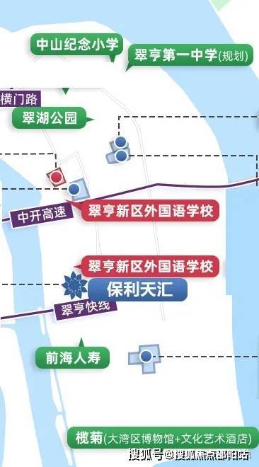 【文体】 :6大主题文体配套:翠亨音乐厅、海洋艺术中心、会议会展中心、中山科学馆、海湾剧场、体育公园、大湾区博物馆。