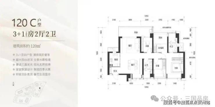 120㎡有B户型传统竖厅以及C户型南北通