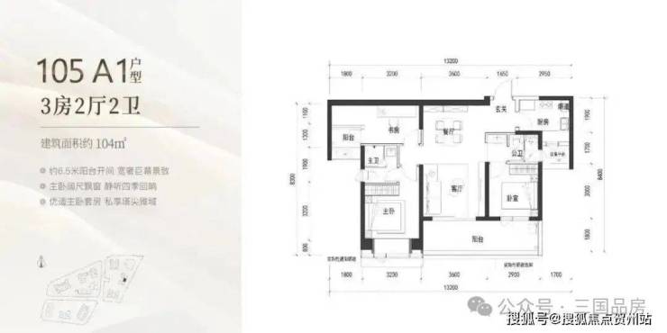 105㎡有两个户型,分别为A1双龙抱珠以及B户型传统竖厅
