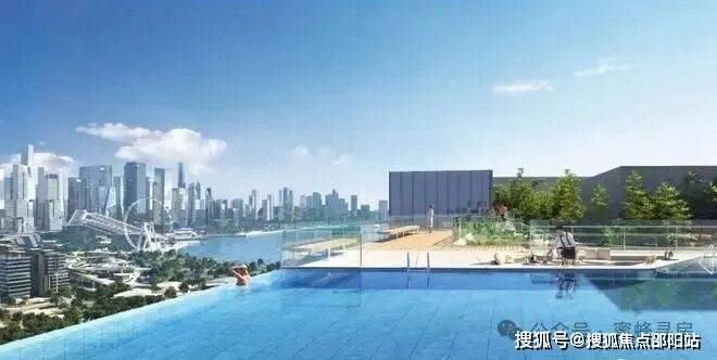 【顶层云端泳池】云端屋顶空间营造天际观海泳池、空中步道、草坪观影、观景吧台等,同频城市峯层的品味共识,塑造云端艺术领地,在此尽享舒适。