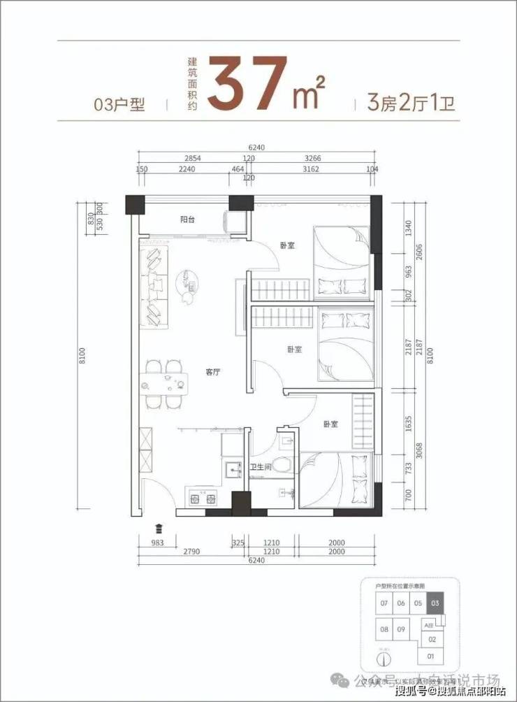 【产品面积】约37㎡二三房(实际套内使用面积接近54㎡)