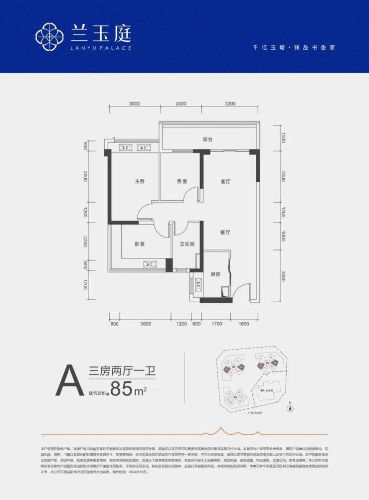 85㎡的3房2厅1卫,折后总价237-272万/套,单价2.81-3.19万/㎡。