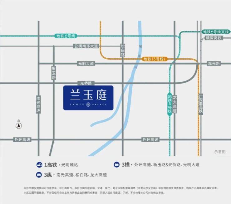 交通配套:兰玉庭出门就是光明主干道光侨路,快速接驳深圳外环高速,南光高速,还有松白路半小时就可以直达南山西丽,当前最近的6号地铁线“长圳站”距离约5公里,后期周边规划有18/29号地铁线“根玉路站”在附近,其中29号线一期已经启动招标。