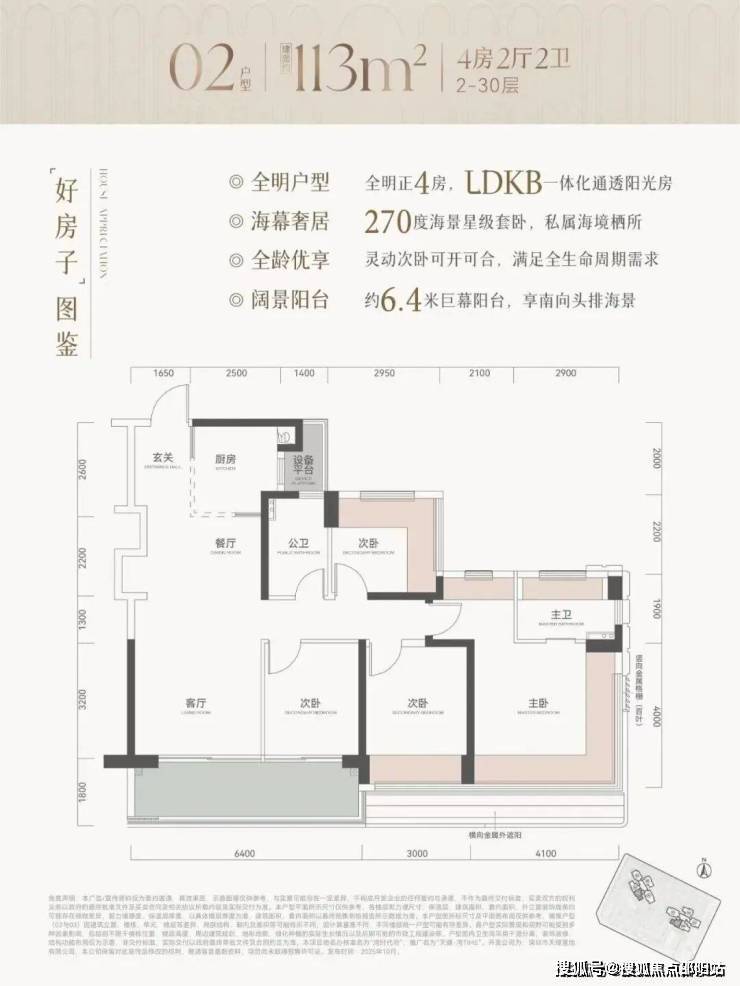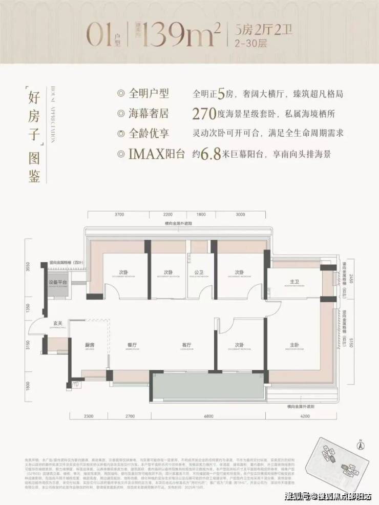 约80%南向全明大面宽户型,全屋环绕式采光面,盛满一室阳光;约6.3-6.8m阔景大阳台,晨间瑜伽、午茶瞰海、暮色小酌,海幕星空自成生活背景;海景星级套卧,270°环幕自在观景,享受头排海景盛宴。