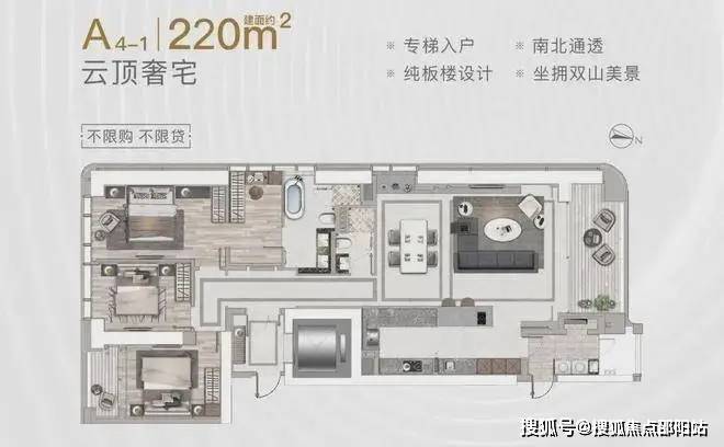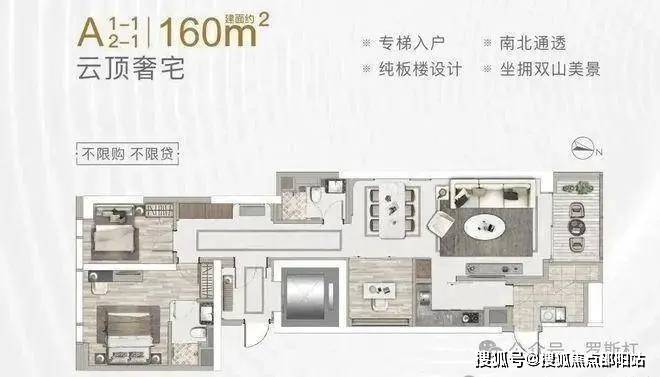 A座:建筑面积约160-220㎡2-3房(南北通透,专梯入户)