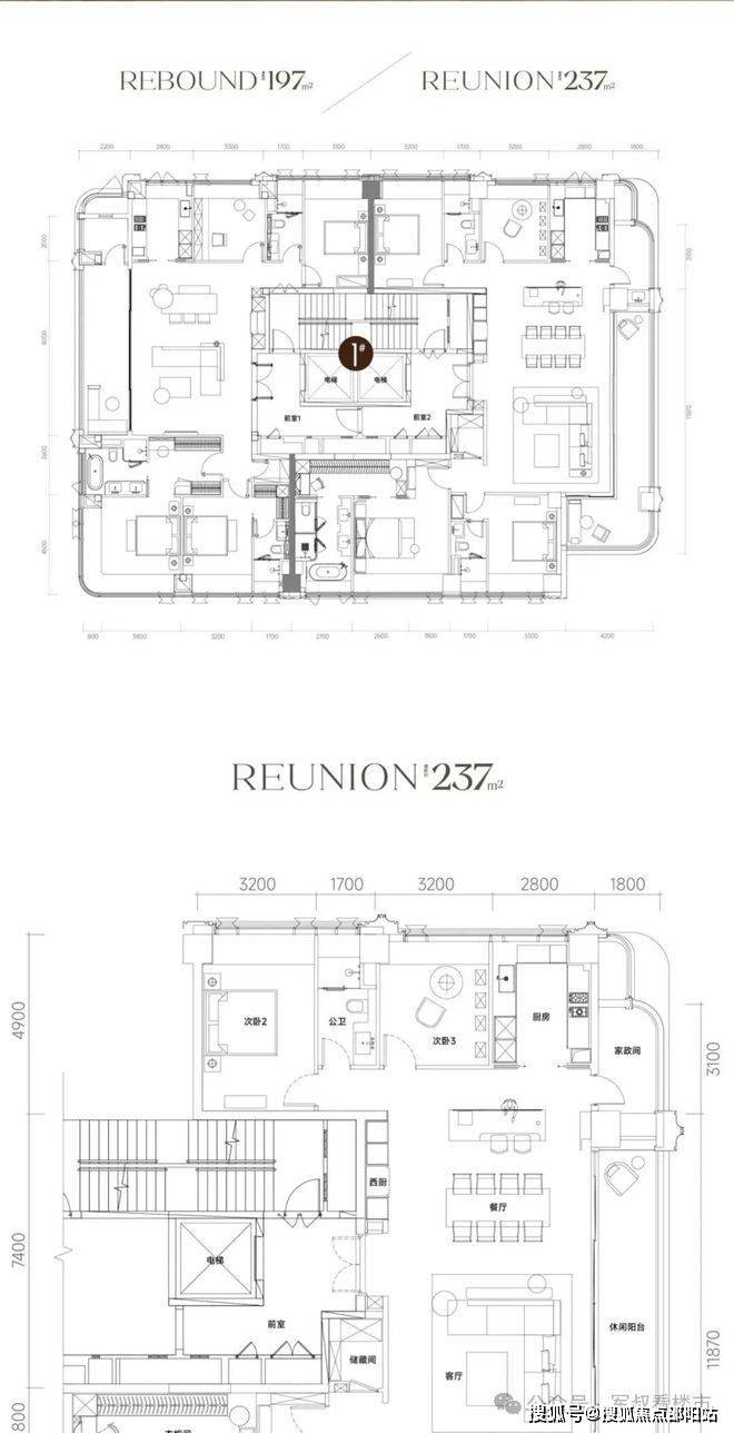 预计首推1栋42套97-237㎡四房大平层,2T2小高层(25F)纯板楼设计,据网上测得数据,拓展后使用率超90%!