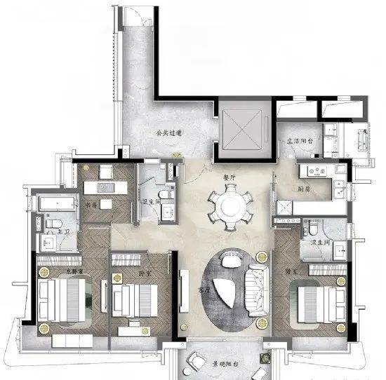 ③户户均享6.8米挑高餐客厅,兼备居住社交双功能