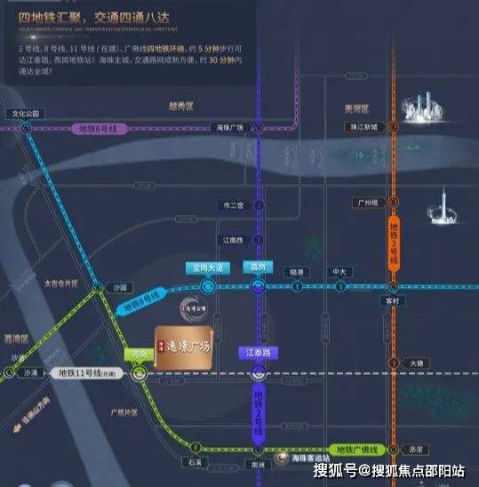 地铁——四地铁环绕,地铁广佛线燕岗站500米左右;地铁2号线江泰路站800米左右、地铁8号线宝岗大道站会远点1.4公里左右;在建的地铁11号线燕岗站串联海珠、越秀、荔湾、天河、白云等五区,最具人气的十大专业市场一站速达;