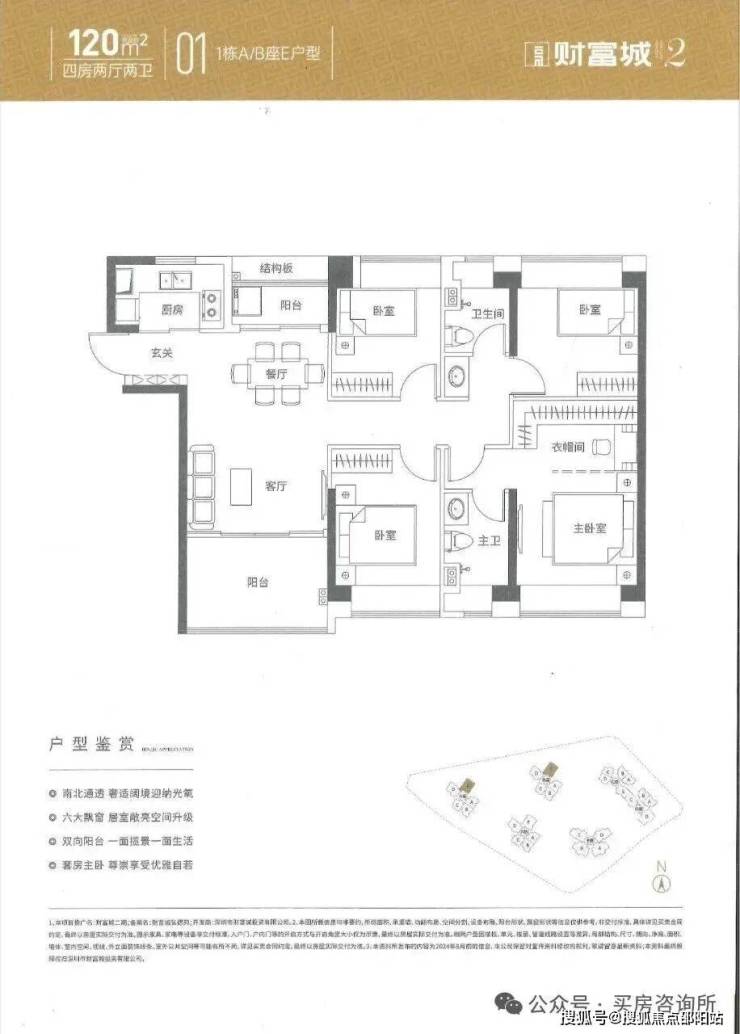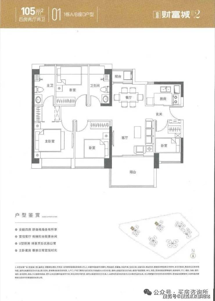 105平-4房2卫,南北向主阳台朝北(共41套,二期唯一直面看公园的4房)320万起