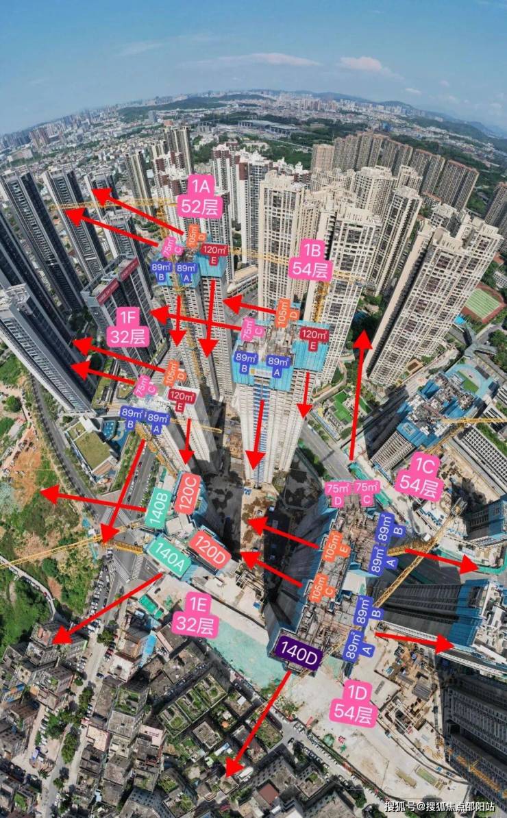 财富城弘德苑:占地面积约2.16万㎡,总建筑面积约18万㎡,计容建筑面积约14.2万㎡,容积率6.58,绿化率35%,共由1栋6座住宅组成,其中1栋A座住宅52F,1栋B/C/D座住宅54F,1栋E/F座住宅32F