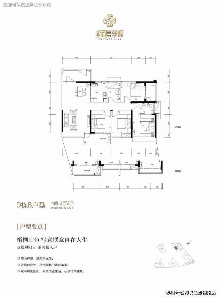 136.17㎡(4房2厅2卫):南向双阳台,定制尊阔主卧套房,私享梧桐山景。