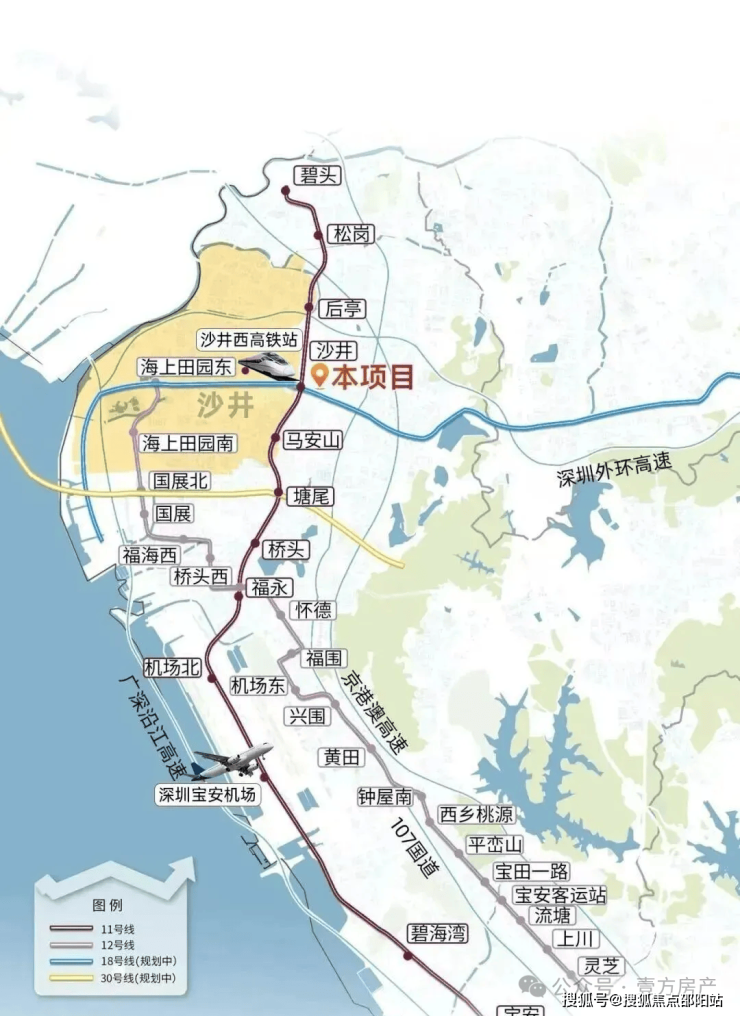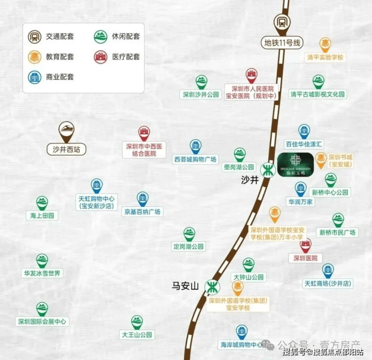 地铁直达:约300米(直线距离)11号线沙井站,6站直达宝安机场,8站宝中,9站前海