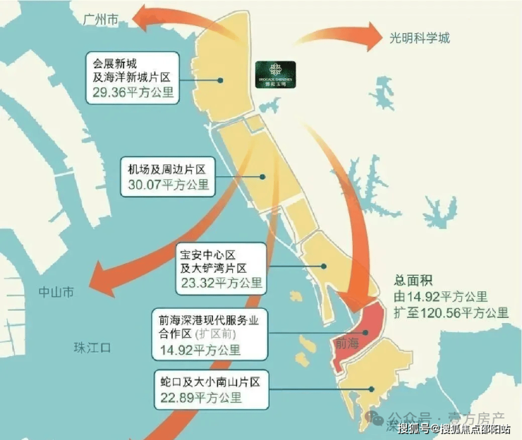黄金内湾:前海扩容区,融入世界湾区第一站往南,是前海;往北,衔接东莞广州;往西,联动中山珠海;往东,携手光明科学城。根据《前海深港现代服务业合作区总体发展规划》,沙井,已经成为“三城一港”核心辐射区。