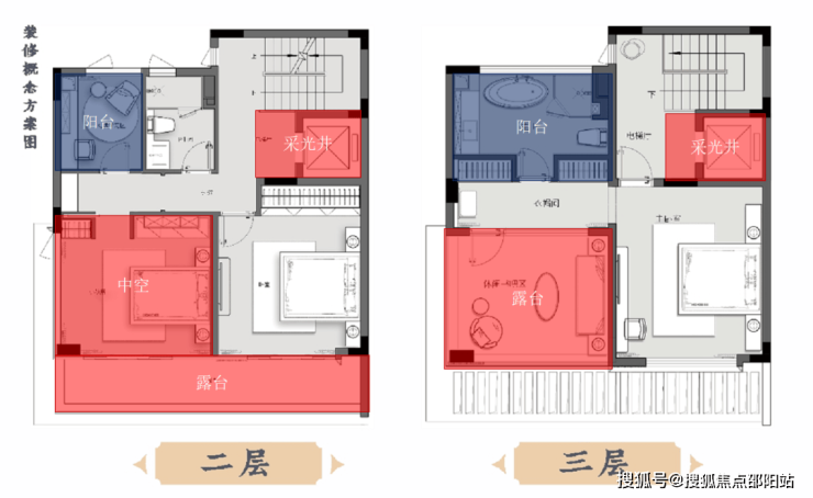 部分戶型規劃為下沉式庭院,打造雙層院落,以及配有前後花園,有天有地,舒適生活由此起。