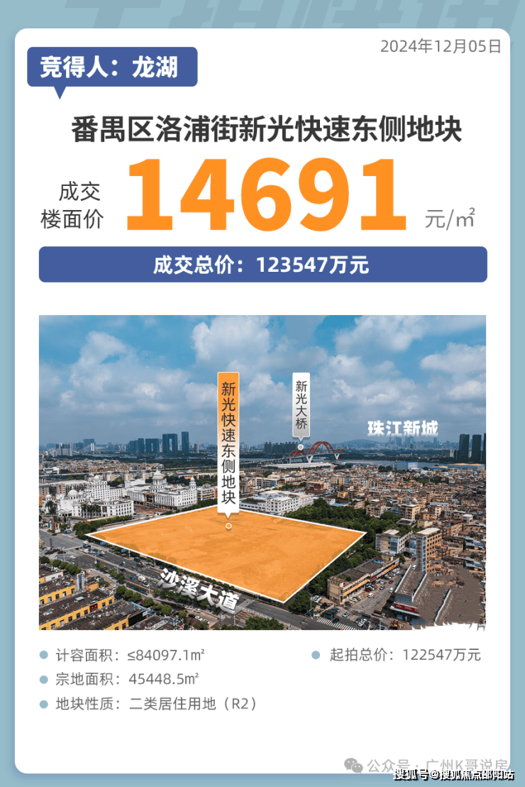 2024年12月5号,番禺洛浦街新光快速东侧BA0104082地块竞拍正式开锣,吸引了绿城、龙湖共两家房企参拍。