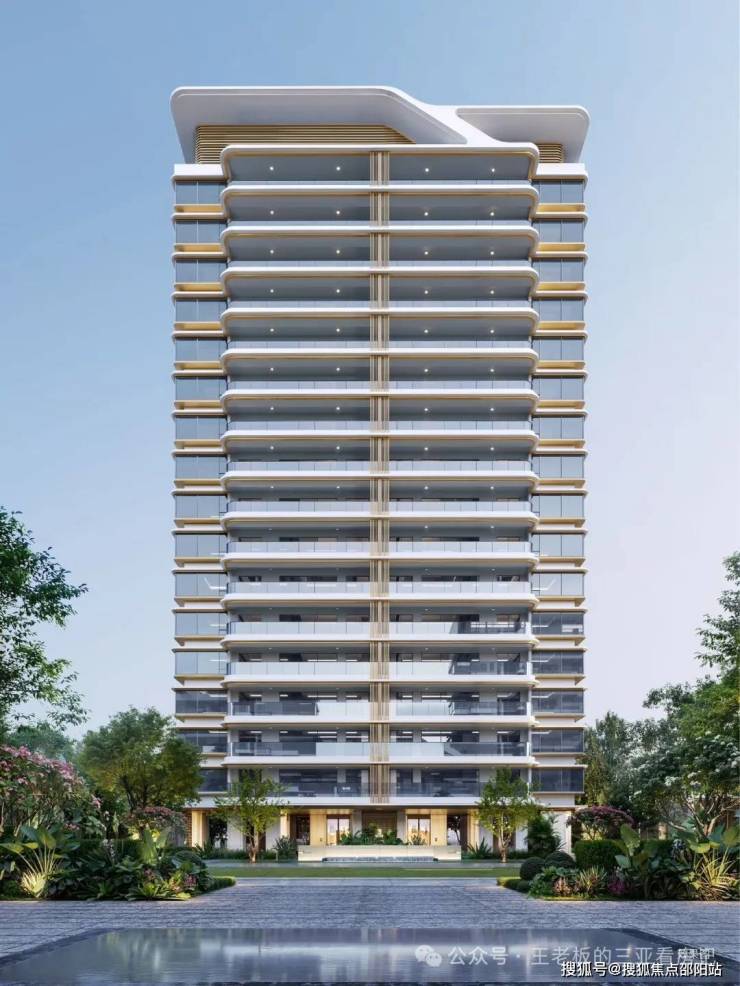 汲取热带隐奢度假胜地建筑灵感,以潮汐之韵律与游艇之优雅为灵感,打造优雅曲线的建筑立面设计,塑造向海而居的松弛惬意。