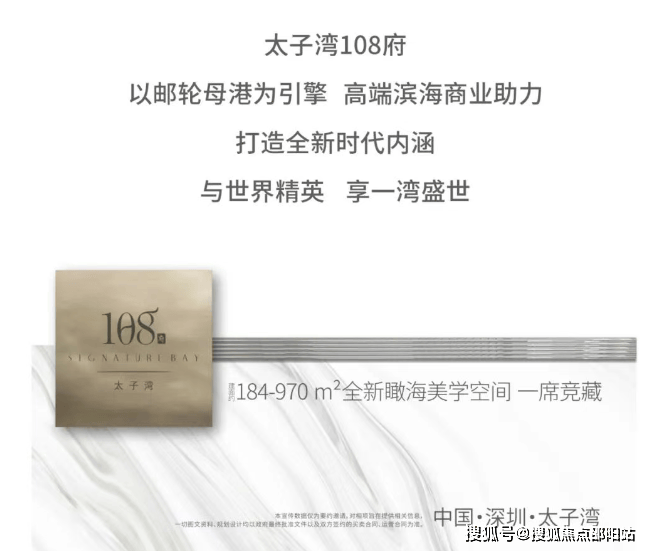 太子湾108府位于南山蛇口太子湾片区,游轮大道西面,总占地1.2万平方米,建面约3万平,集邮轮母港、总部办公、顶级商业、高端居住、五星级酒店、文化艺术国际学校、国际医院等多元业态于一体。世界级国际滨海综合体,在售面积约185-384平2-4房,精装交房。