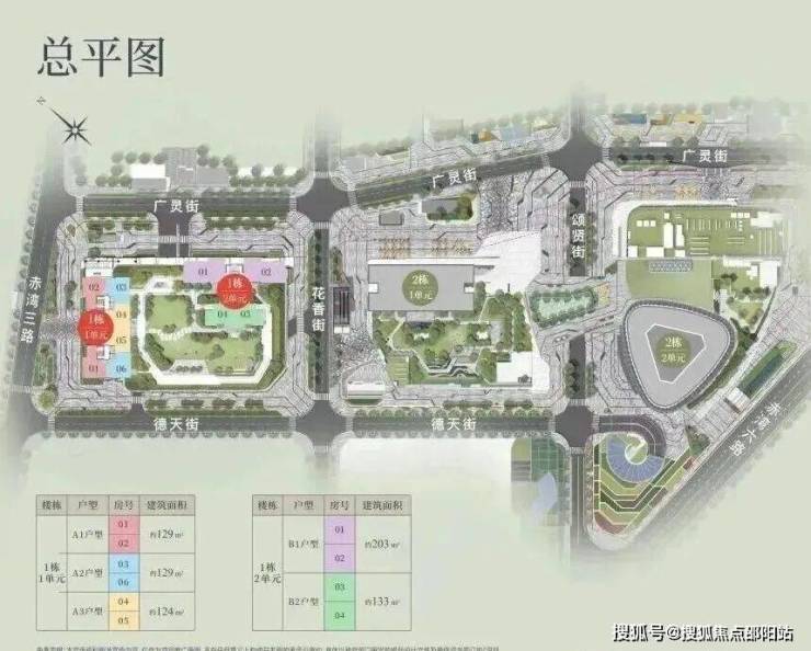 A1有两条腿,分别1-1栋01/02,主朝向是西北向,双龙抱珠格局。