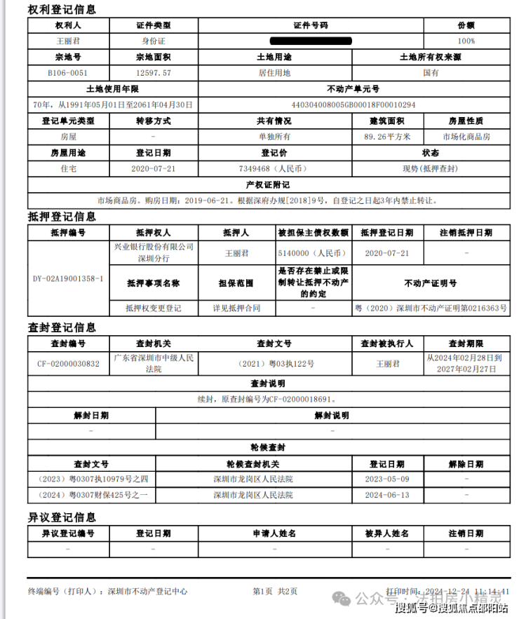 拍卖原因:按揭断供,买入734万,首付三成贷款金额514万