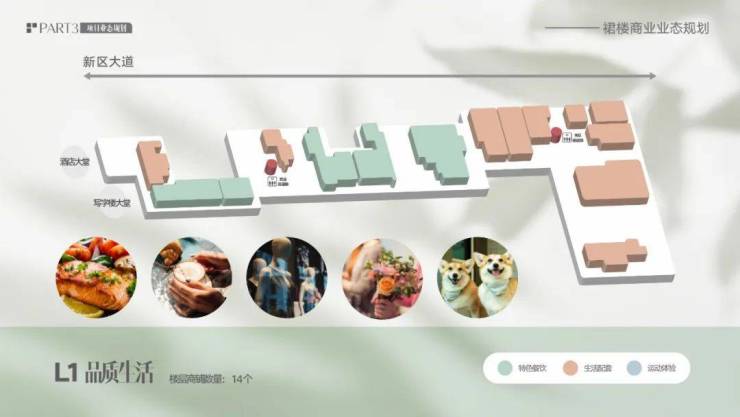 以美食、运动、配套服务品类为主,从多元化、自在、松弛出发,深度打造社交场景,独具特色森系社交空间。