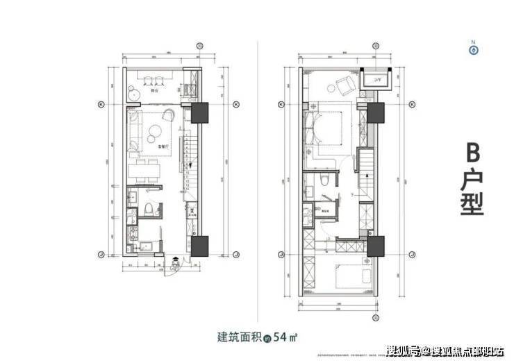 B户型:建筑面积约54㎡,套内面积约90㎡