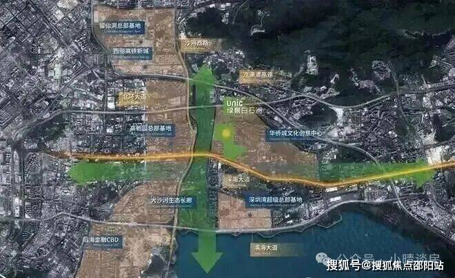绿景白石洲位于深圳核心位置南山区的华侨城片区,深圳城市发展主轴——深南大道与大沙河创新走廊十字交汇点,依托华侨城人文艺术城区,链接后海总部基地、深圳湾超级总部基地、留仙洞总部基地、高新园总部基地四大总部基地。