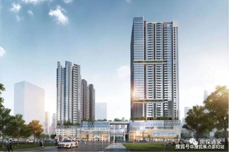 项目共有2栋楼,由南、北塔组成。其中南塔楼层较低,共有32层,包含回迁房、保障房以及商务办公;而北塔分为A、B两单元,其中A单元为住宅,共45层;B单元为公寓,共43层,1-5层为商业办公区域,6层为社区空中花园,7层往上才是住宅以及公寓。