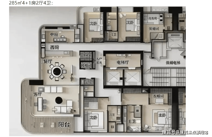 豪宅基本配置,专梯入户,该户型属于传统竖厅结构,动静区分明,客厅与厨房同处一条直线,卧室则处于另一块静区,由于该栋单层3户,做不到其他栋两户或单户的客厅180度多面景观设计,只能牺牲小户型,估计这一栋定价也是最低的,上车门槛估计2800起步。