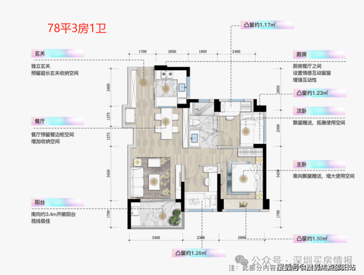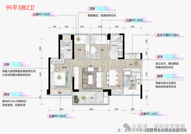 78平3房1卫,95平3房2卫,112平4房两卫三个户型