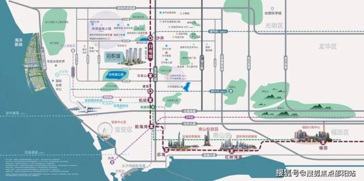 自驾方面,项目呈现“一横四纵”的路网布局,包括深圳外环高速,广深沿江高速、宝安大道、广深公路(107)和京港澳高速等,轻松畅达全城。