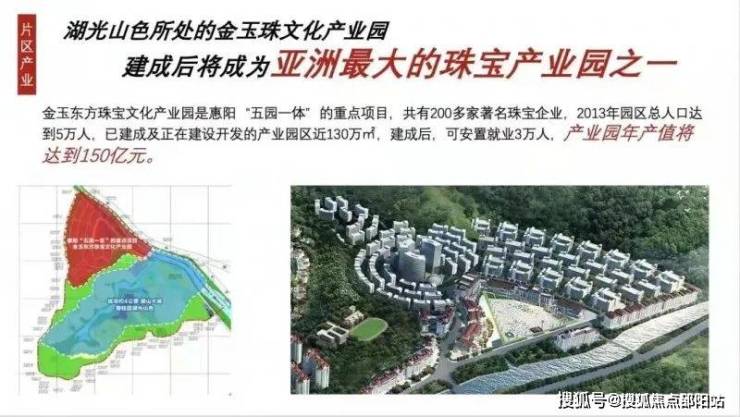 项目周边有金玉东方珠宝文化产业园(是惠阳“五园一区”的重点项目,也是深圳珠宝产业双转移基地)。还有梅龙湖智能制造产业园(总规划用地约25.67平方公里(比半个澳门还要大),致力打造粤港澳大湾区“产城人”融合发展新标杆、深莞惠区域协同发展智能制造新高地。