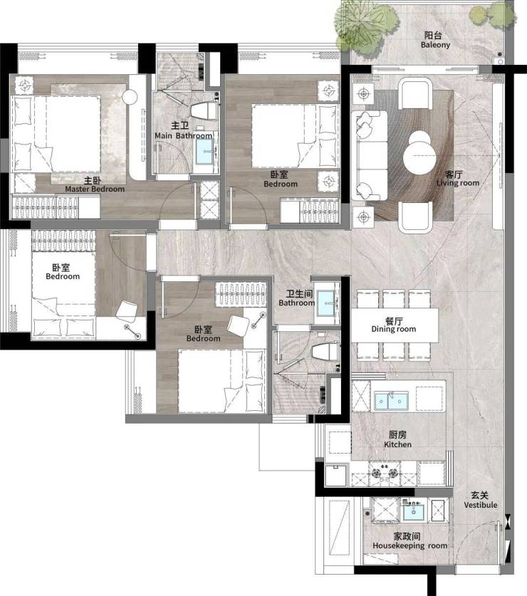 外接宽敞阳台,通风对流,聆听和风细雨,享全天鲜氧供应;